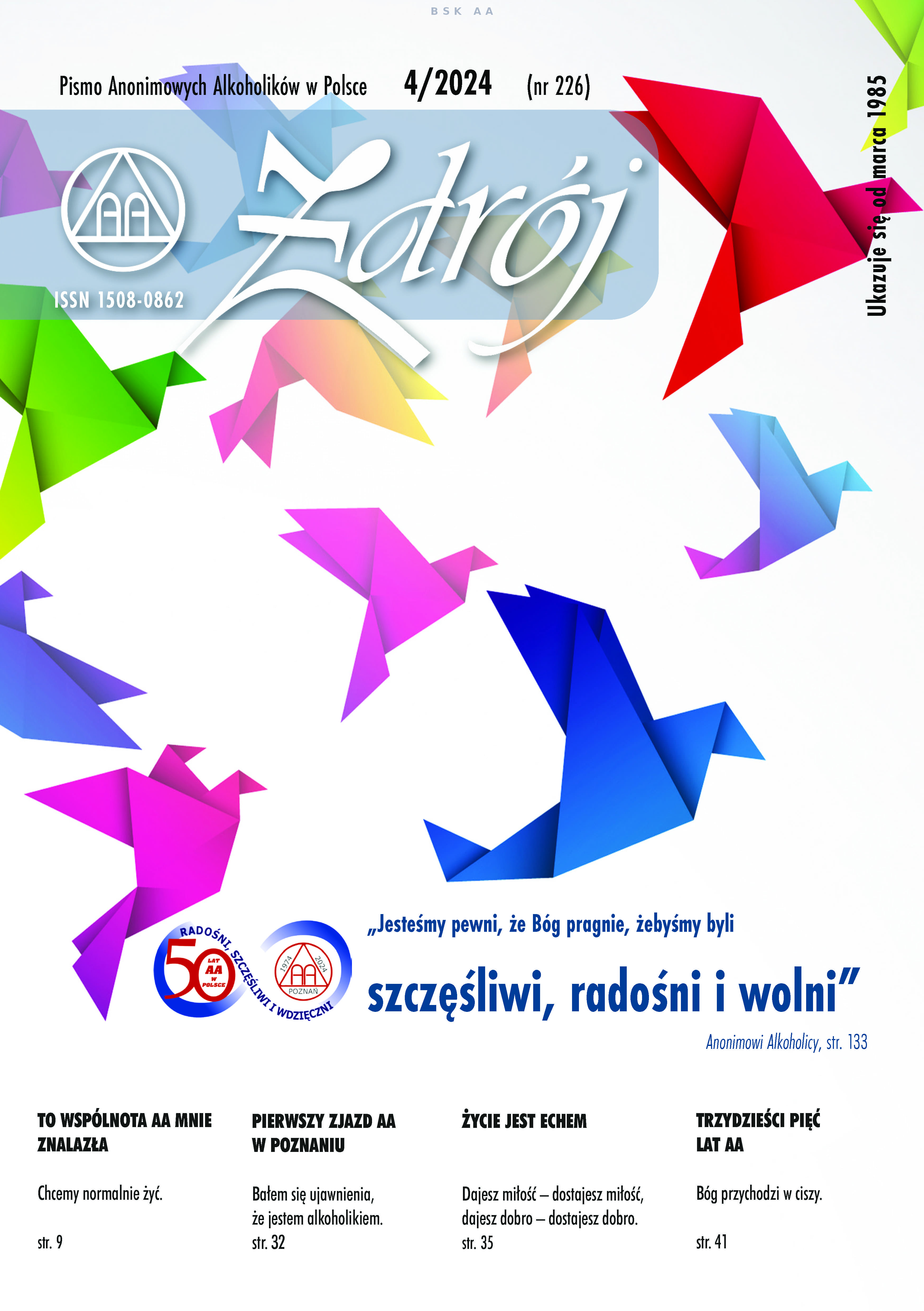 W marcu 1985 roku ukazał się pierwszy numer pisma zatytułowanego „Ruch Anonimowych Alkoholików” – to wydarzenie uznaje się za datę narodzin dzisiejszego „Zdroju”. Czasopismo zrobiło furorę w środowisku AA, szczególnie kiedy okazało się, że publikowane są w nim autorskie teksty członków AA, którzy dzielą się swoimi doświadczeniami. W ciągu 40 lat istnienia „Zdroju” zmieniała się jego zawartość, koncepcje, zespoły redakcyjne, ale jedno pozostało niezmienne – misją pisma jest dostarczanie czytelnikom inspiracji do przemyśleń i duchowego rozwoju, wspieranie ich i pomaganie w osiągnięciu trzeźwości.